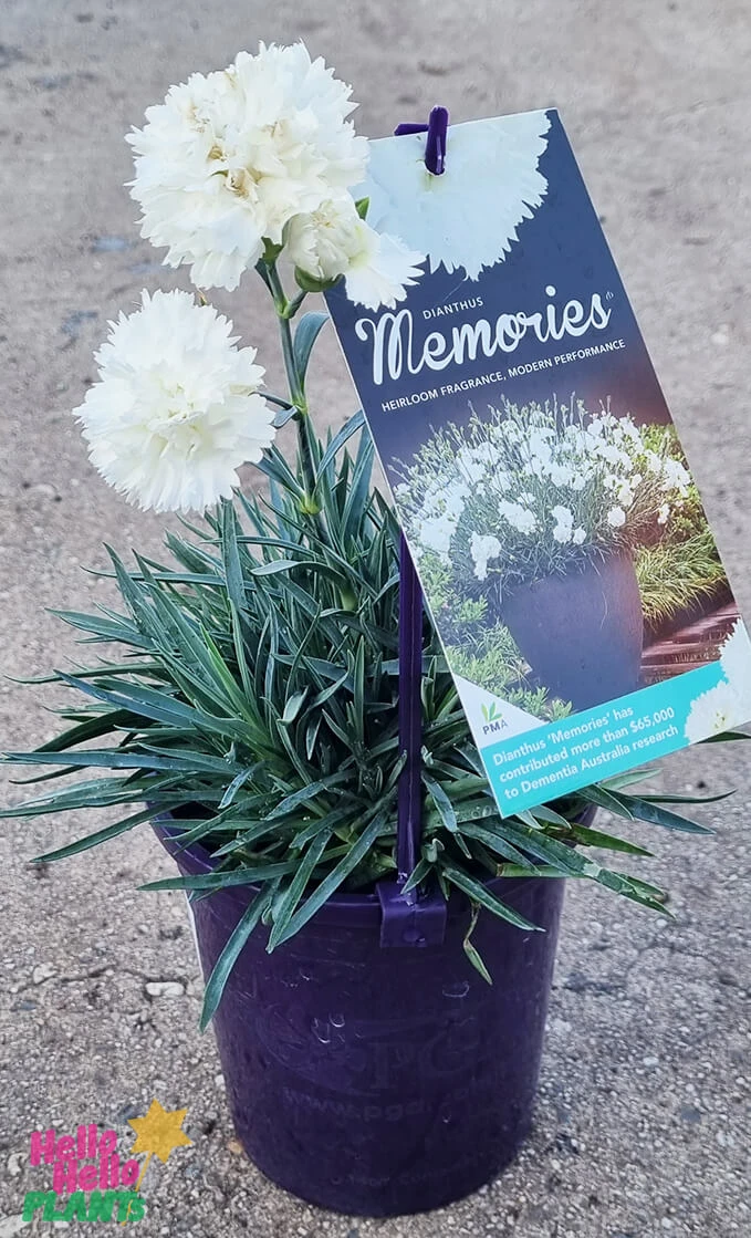 Memories display pure white blooms. It is noted for its long flowering blooms held on sturdy stems. Dry tolerance, delightful fragrance and exceptional hardiness are hallmark features of this beauty. Ideal for low hedging and borders. These look fantastic when mass planted for ground cover. Grows to approximately 30cm in height. Loves a position of full sunlight.